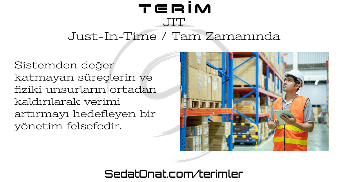 <figure><img src="https://130766147-files.gitbook.io/~/files/v0/b/gitbook-x-prod.appspot.com/o/spaces%2F6RbqHJXMLivEesJCww8W%2Fuploads%2FKBT6D4bTpQ1qpV4miu8D%2FJIT%20-%20TR%20L.jpeg?alt=media&#x26;token=2d4bc7c9-461b-46d9-8e4d-f04ddbe6fc49" alt=""><figcaption><p>JIT - Just-In-Time / Tam Zamanında</p></figcaption></figure>