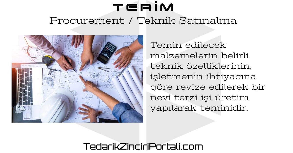 [Purchasing](https://www.tedarikzinciriportali.com/post/terim-satinalma-purchasing)’den farklı olarak, temin edilecek malzemelerin belirli teknik özelliklerinin, işletmenin ihtiyacına göre revize edilerek bir nevi terzi işi üretim yapılmasıdır.