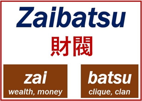 Zaibatsu, “Zai => Para” + “Batsu => Klan/Topluluk/Kabile” kelimelerinin birleşiminden oluşan “Para Topluluğu” anlamına gelir.